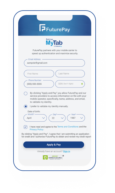 Check out with MyTab to avoid rigid monthly payments. At the end of every billing period, you can pay your balance in full or carry your tab a month longer.